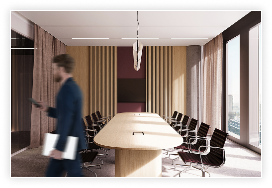 Fluid spaces, fully customisable – The Berlinian’s interior is as versatile as the needs of today’s visionary entrepreneurs. Every detail tailored to your vision!